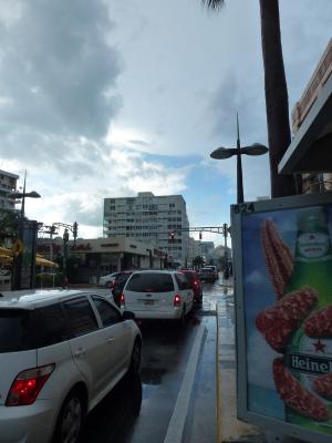 Die Hauptstraße, Avenida Ashford, am verregneten Sonntagnachmittag...