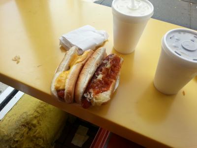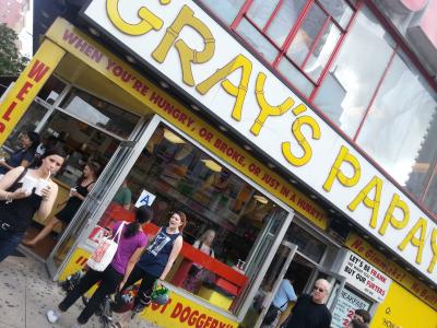 Das (inter)kontinentale Frühstück ist meiner Meinung nach wunderbar und ich habe bereits gefühlte 2kg zugenommen ;) Dass liegt aber wohl auch an den anderen kulinarischen Spezialitäten die es hier an jeder Ecke gibt. Das Gray's Papayas, welches gleich die Straße runter ist, hat in der Tat die besten Hotdogs, aber seht selbst: