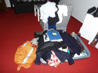 Zurück zum Wesentlichen: Freitag ist es also so weit und ich habe noch immer keine Ahnung, was ich mitnehmen und was hier lassen soll - die Frauen werden das Problem sicher verstehen ;) Die aktuelle Pack-Lage seht ihr auf dem Bild und somit sollte es kein Wunder sein, dass mich das in eine mittel-schwere Krise verfallen lässt! Zum Glück kommt Mutti morgen und hilft mir :)
